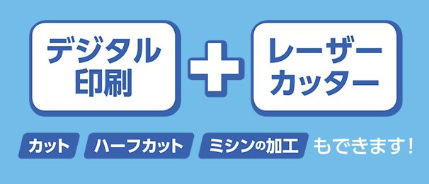 デジタル印刷機とレーザーカッターを使用することで、コストのかかる型代が不要で小ロットでもご発注いただけます。
