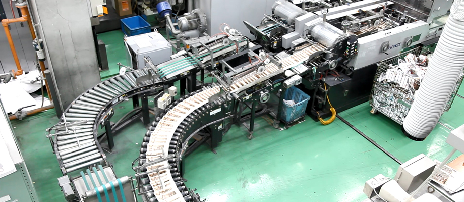 弊社のオフセット輪転機は24時間体制で稼働しており、B2計算で約100万通のキャパシティを誇ります。また、B4/8P折出しやB5/16P折出し、B2シート出しやスリッターによる二列出しなどにも豊富に対応しており、印刷後の工程もスムーズに対応できるようになっております。